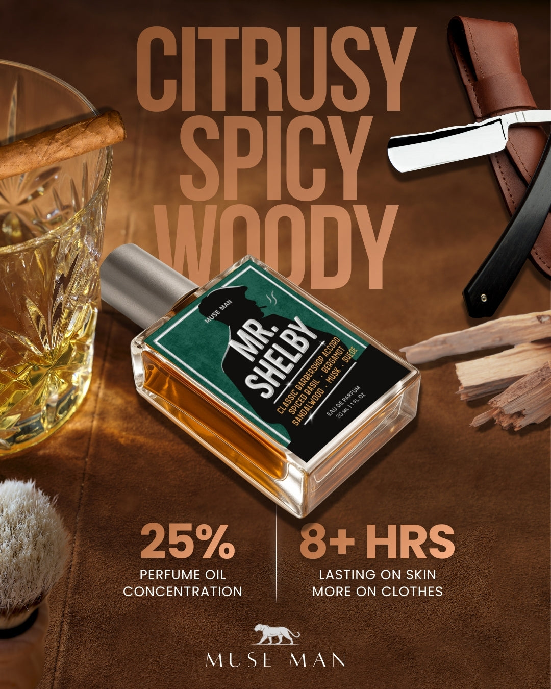 Suede anchors the base with a soft leather finish, giving the scent its vintage backbone. Inspired by Mr. Shelby, this is a true throwback barbershop fragrance, fresh, spicy, leathery, and unapologetically old-school masculine.