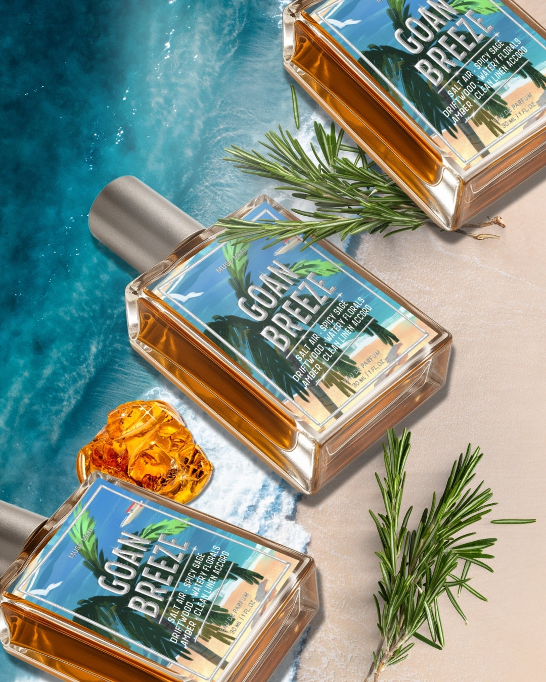 Driftwood and amber warm it up gently, like sun on damp skin after a swim. This is a spicy fresh scent that feels like a Goan summer. A chilled beer post beach, salty hair, linen shirt, and nowhere to be. The perfect daytime fragrance.
